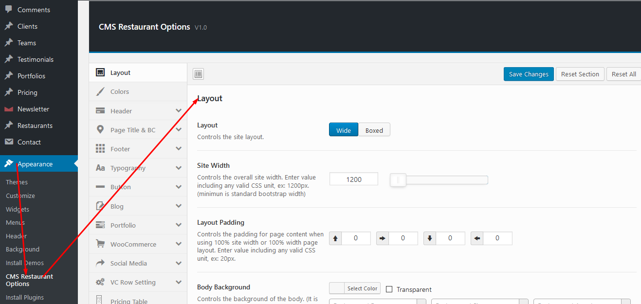 CMS Restaurant is managed through a network of options called CMS Restaurant Theme Options, Page Options, and Post Options. The Theme Options _are located in Appearance > CMS Restaurant Opotions and contain a plethora of theme options organized into tabs. Theme options are all global options which means any option set in Redux Options will affect your entire website. If you want to set more specific options for a particular page or post, you can set them in Page Options, which is located in every page or post. Page Options will only affect the page or post you set them in, and will also override any theme options it overlaps with. Use the Page Options to fine tune your website to just the way you like it. CMS Restaurant also has Post Options which are options set inside individual shortcode elements. Theme options only affect the shortcode they’re set in and override any overlapping theme options set in the Shortcode Styling tab.