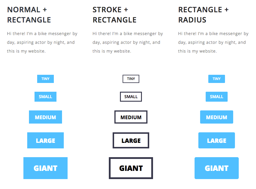 In CMS Restaurant, we have defined 5 different buttons size: Tiny Button, Small Button, Medium Button, Large Button and Giant Button. Each button, you can _setting the fonts: _family, size, line-height and padding. The image bellow is sample for Tiny button